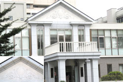 フラテ会館にレリーフが付く |